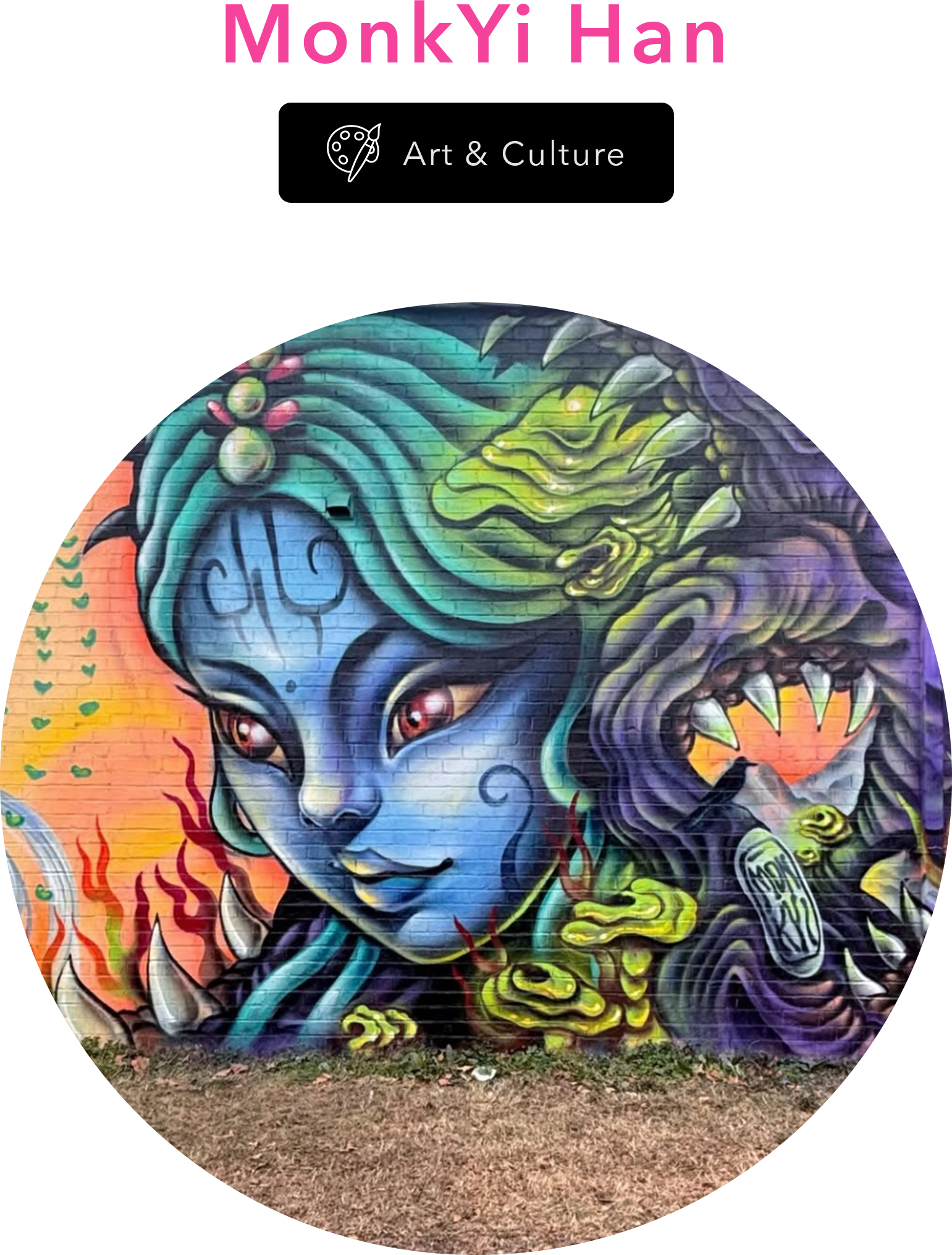 MonkYi Han is a Toronto-based, second-generation Chinese-Canadian muralist and street artist whose work draws on folklore, mythology, and cultural heritage. Moving between beauty and strangeness, her imagery blends mythic and spiritual figures with more instinctive, playful forms.